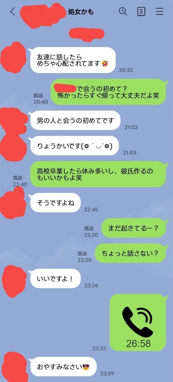 3月25日に彼氏いない歴=年齢の元JKとLINE交換に成功