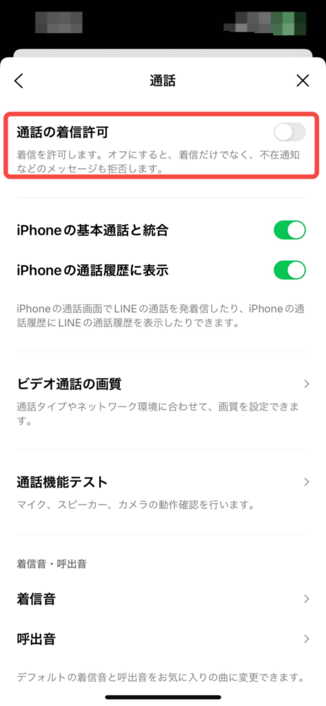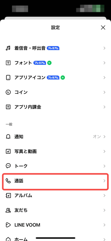 ホーム画面から右上の設定ボタンを、開き通話へ進みます。
