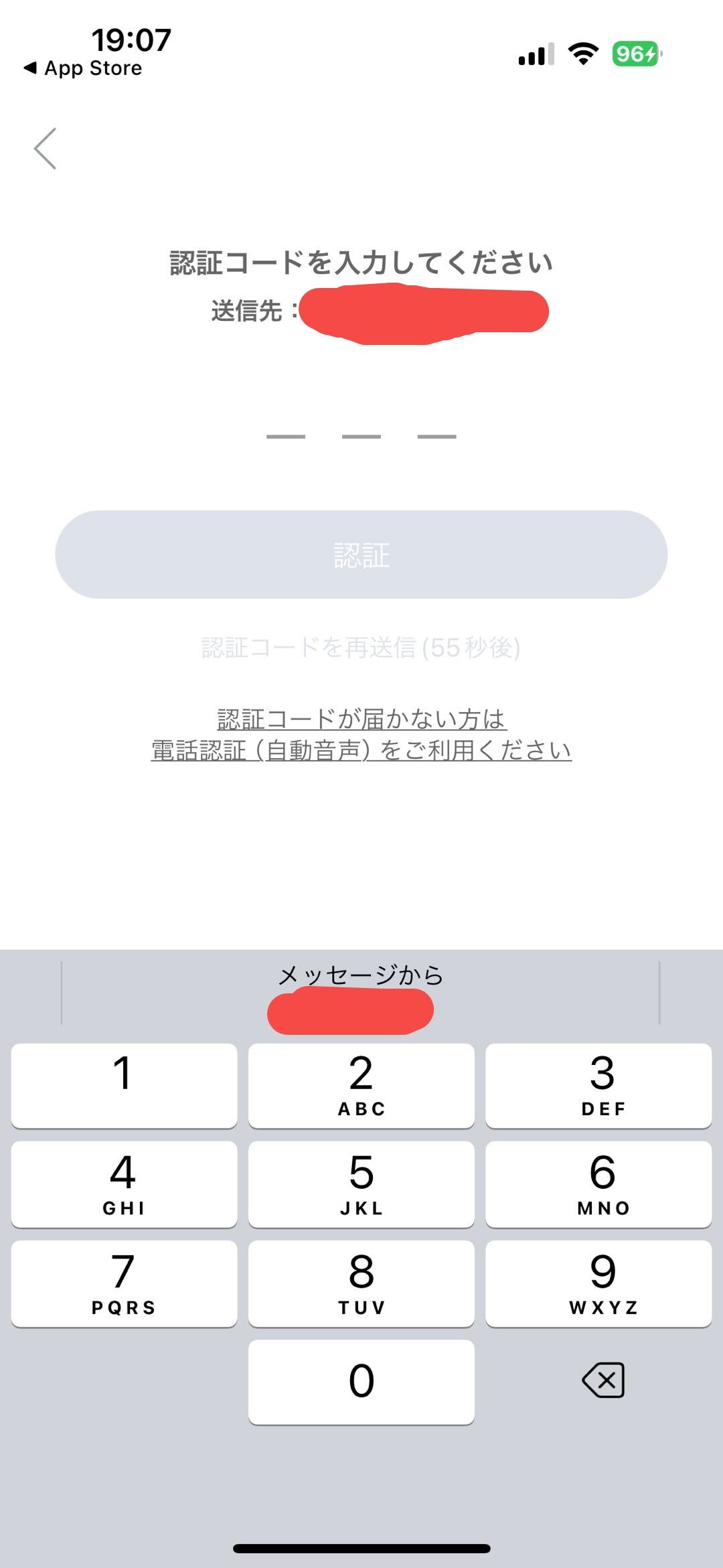 下にスクロールし、携帯番号とログイン時に使用する暗証番号を入力
